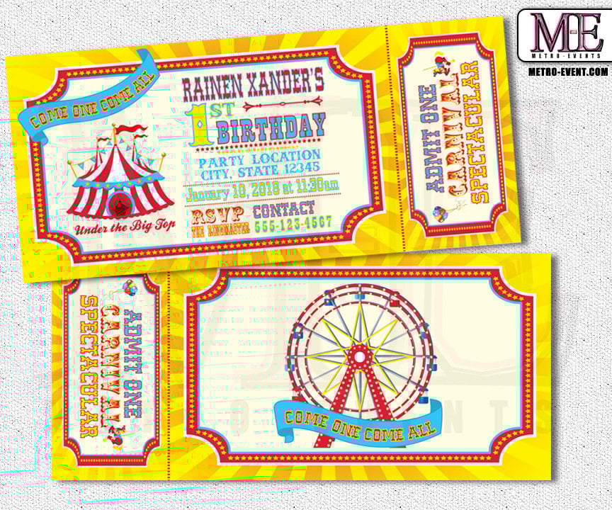 Circus or Carnival Invitations, Digital File: Custom Invitations, this is a printable file, I email the files to you, and you can print as many as you need. The colors are: Cyan Blue, Red & Yellow