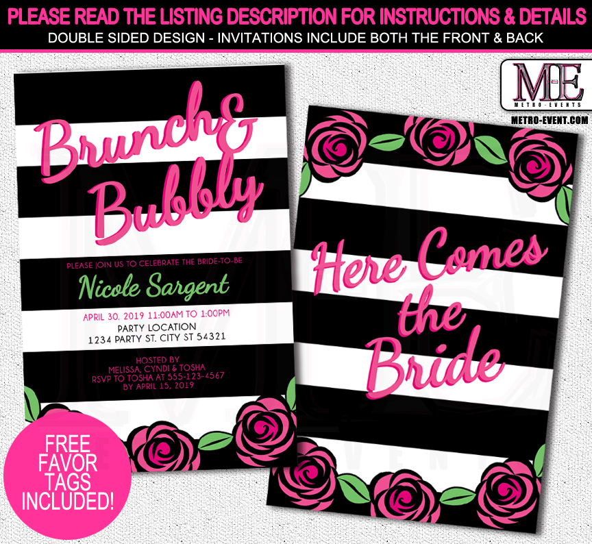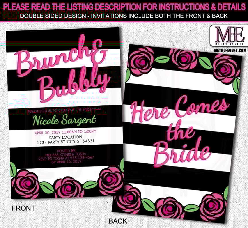 Bridal Shower Invitations, Black and White Invitation, Shower Invitations, Bachelorette Party Invitations - Your choice of digital invitation file(s) or Printed invitations.