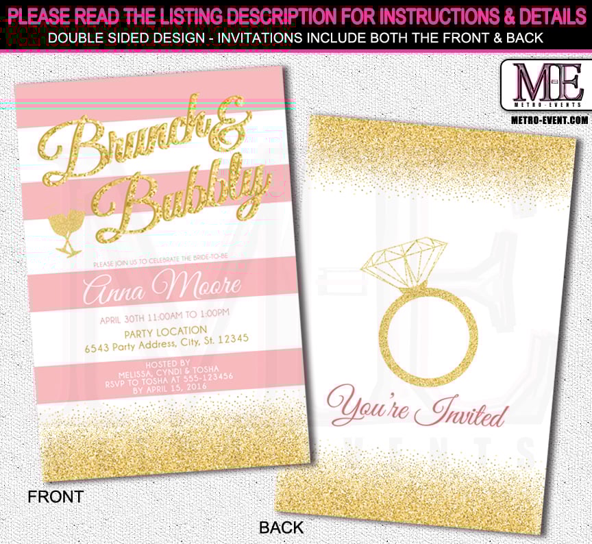 Brunch and Bubbly Bridal Shower Invitation - Printable File or Printed Invitations