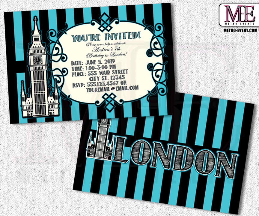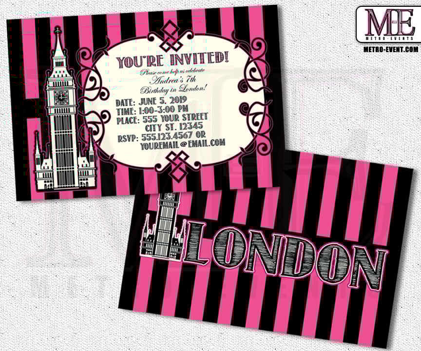London Invitations, London Party, London Birthday, Sweet 16 Invitations, London Invitation, London Invite, London Invites