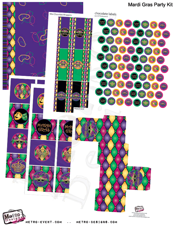 Mardi Gras Party Kit Digital Files, Custom party decorations, printable files, Metro-Events will email the files & you can print as many as you need.