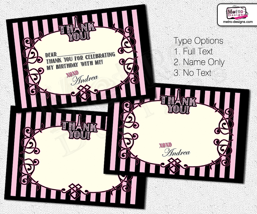 I will add the text and then I will email you a high resolution jpgs for you to print as many thank you cards as you need.