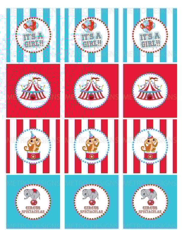 Toppers can be used as other decorative items, such as ~ on napkin wrappers, as stickers, on party hats, on candy jars or other containers, etc. You name it! Print one or print 100!