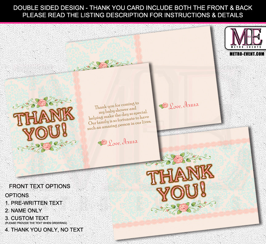 ● This listing includes: The Design of the Thank you cards from our Shabby Chic Collection!