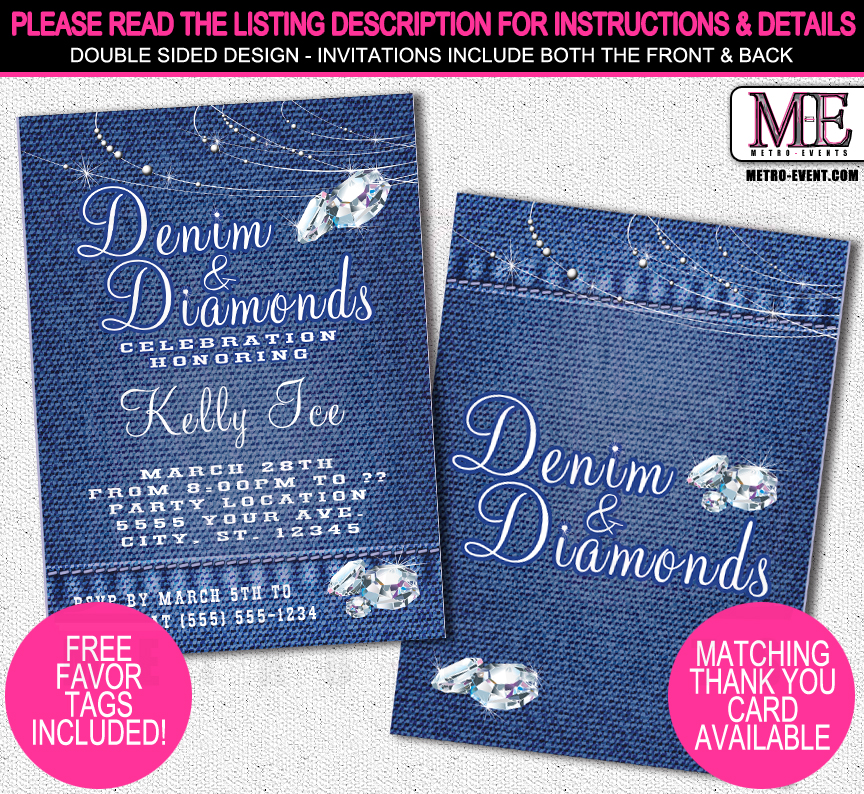 Denim and Diamonds Invitations Created By Metro-Event.com