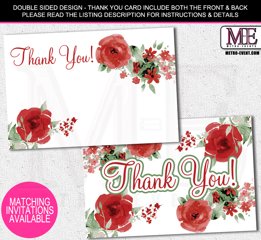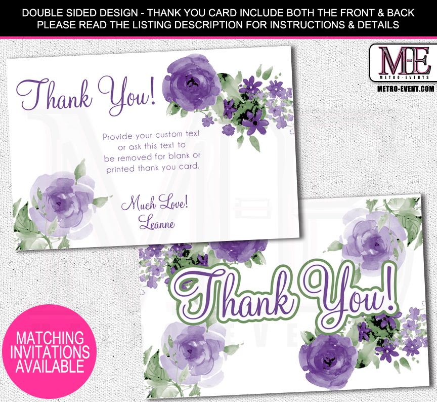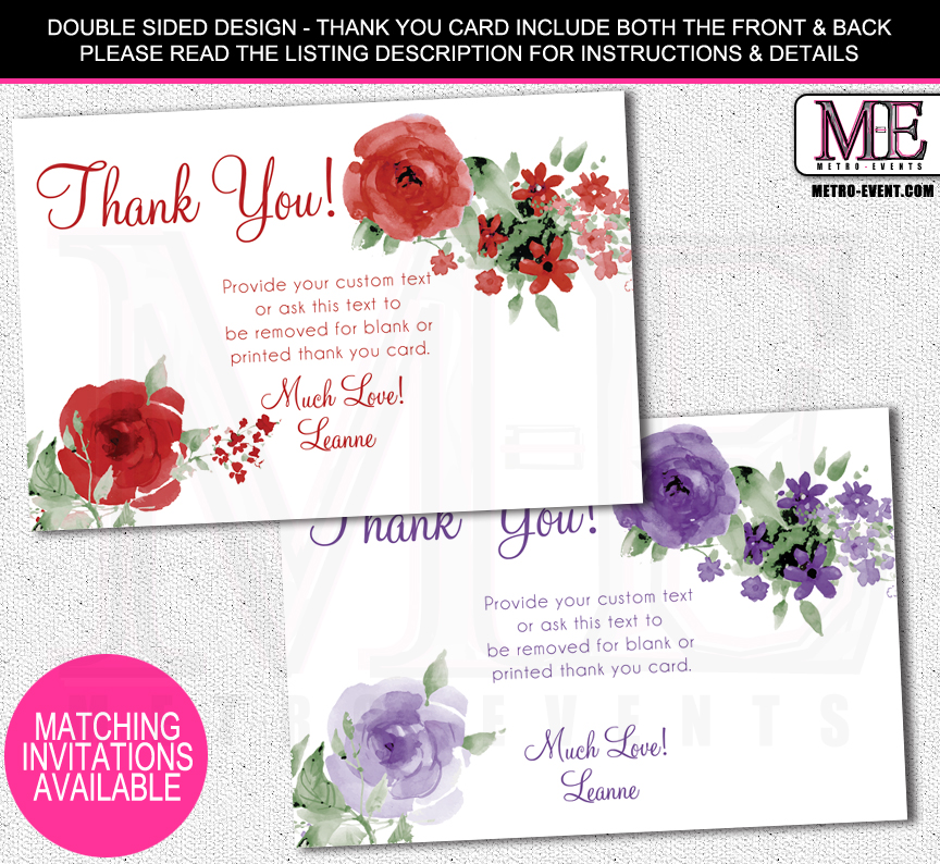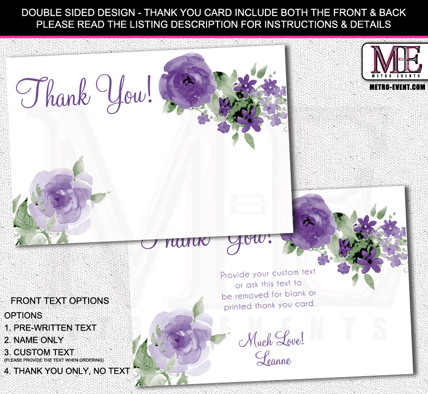 I will add the text and then I will email you a high resolution jpgs for you to print as many thank you cards as you need.