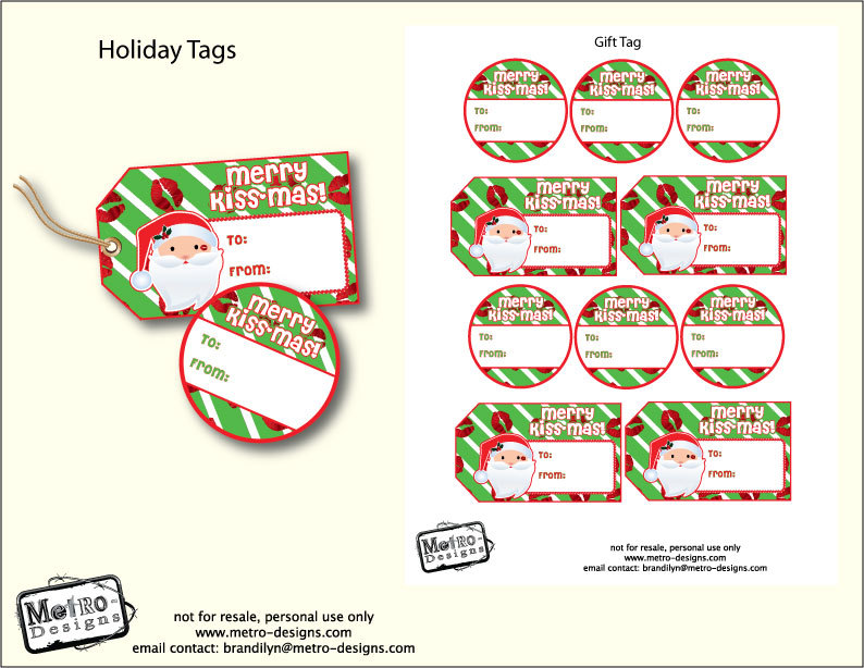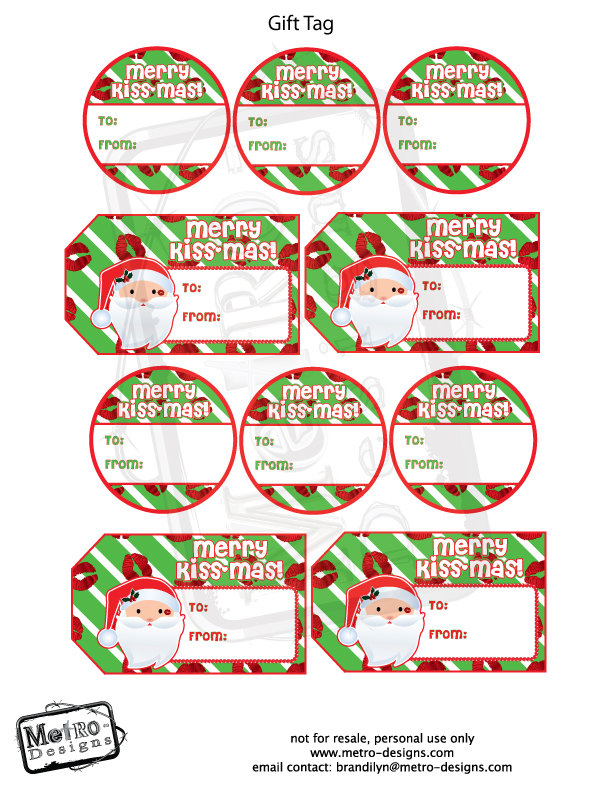 "Merry Kiss-mas" Christmas Tags - use for gifts, cupcake toppers, favor tags and anything else you can think of.